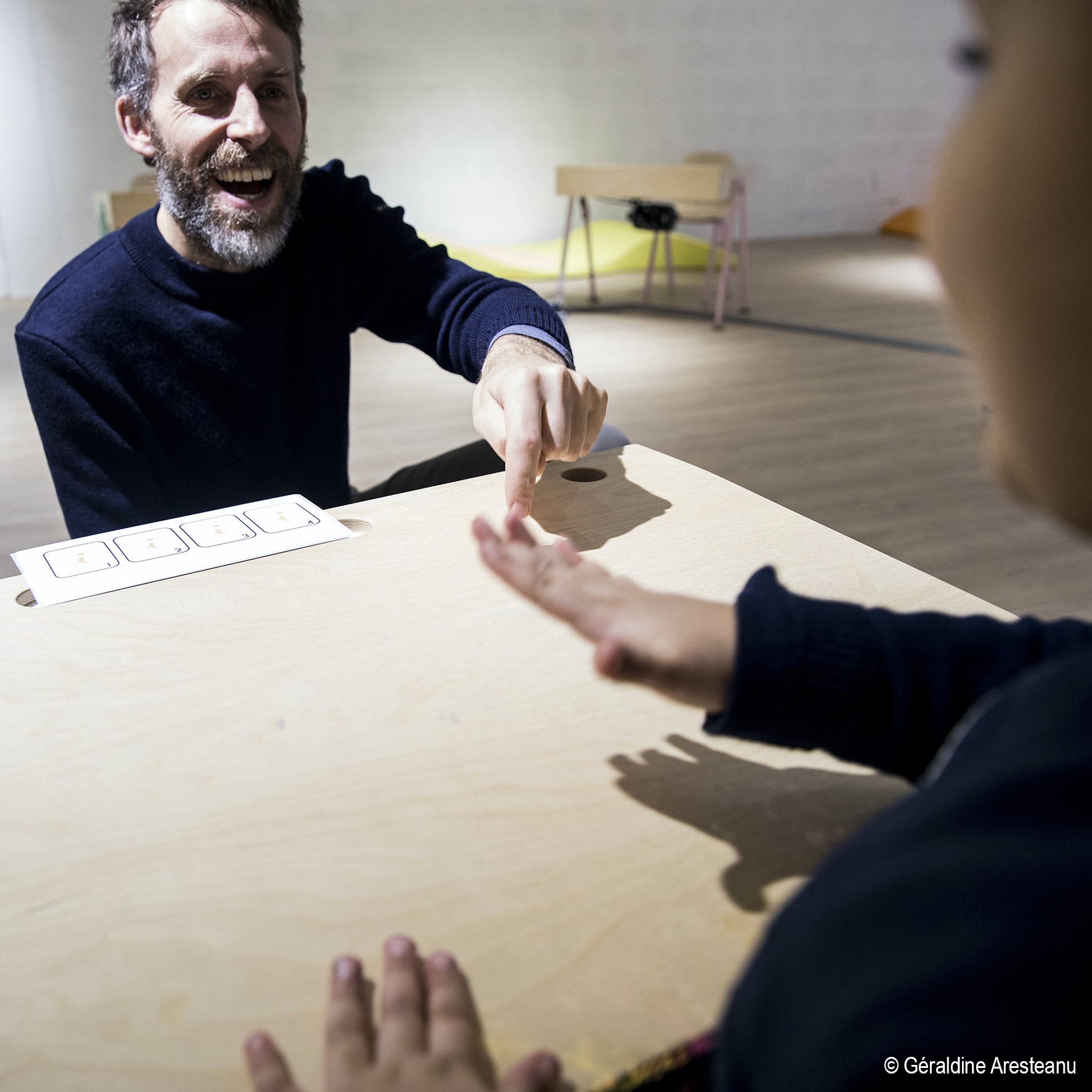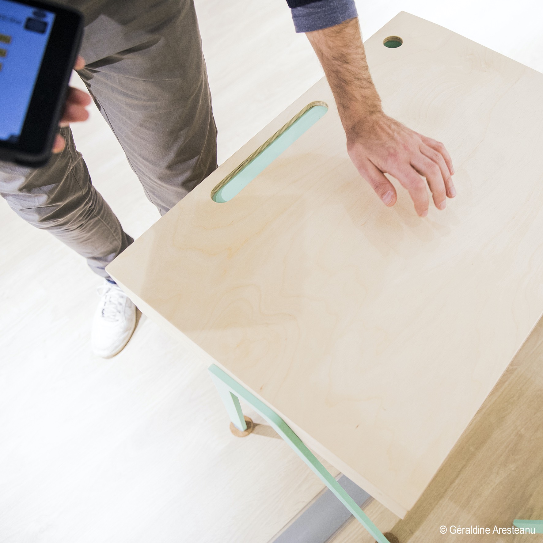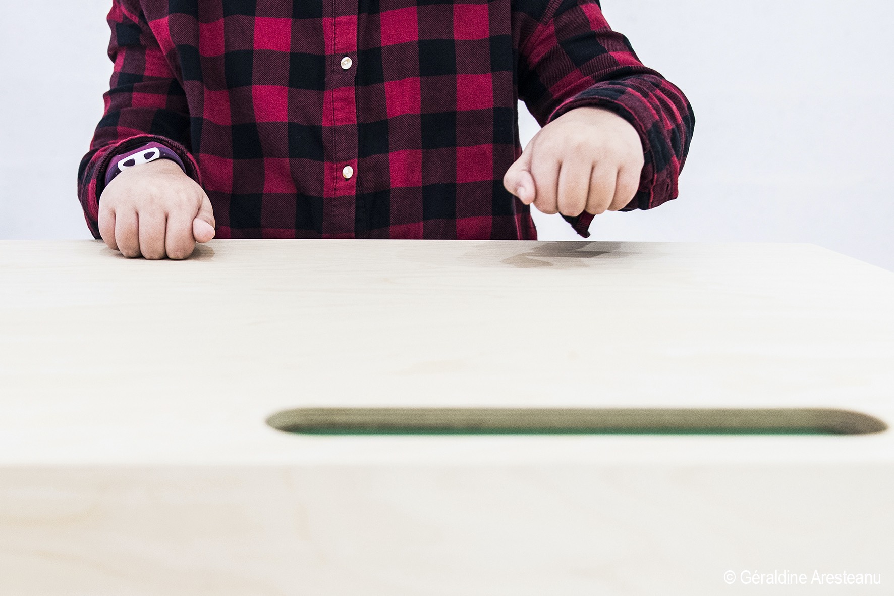 Three gestures – knocking, tapping and rubbing – transform a simple table into an instrument of music and interactive play.