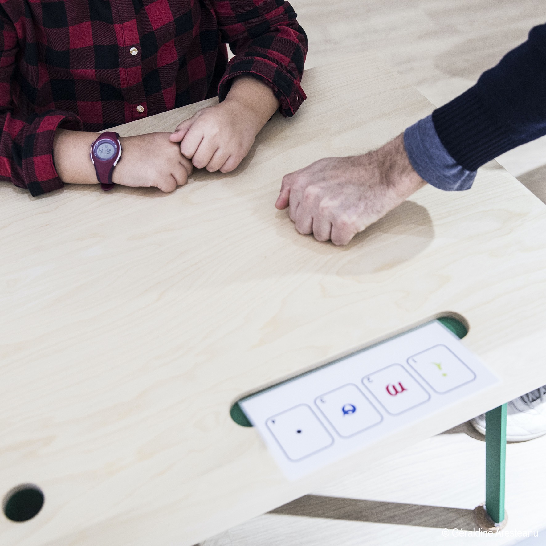 The tables translate the children’s gestures into sounds specifically created for Touch The Sound, corresponding to 5 sound universes: water, wood, rock, metal and electronics.